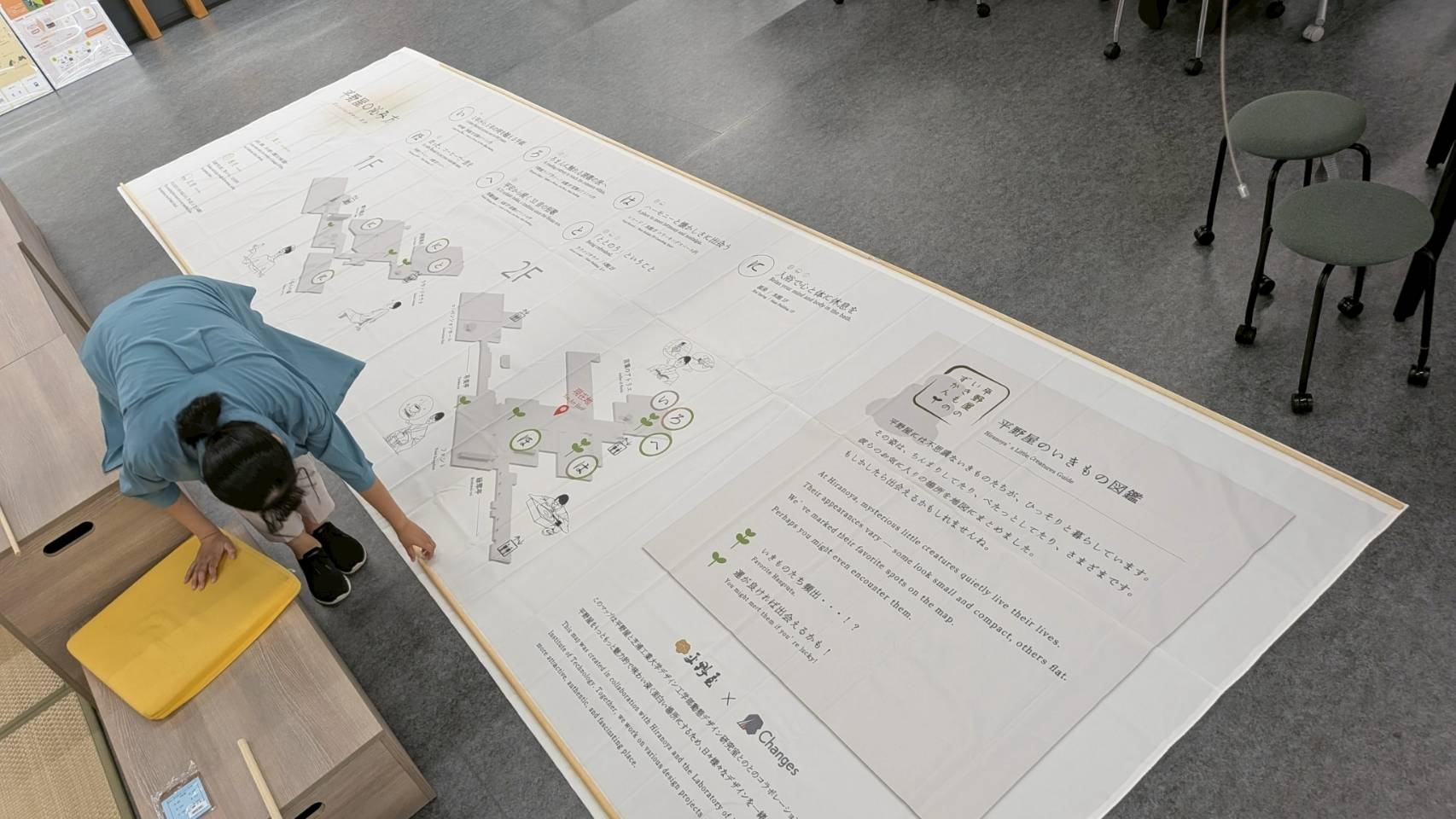 そんな平野屋のサバティカルな理念を、芝浦工業大学の学生たちが美しいマップという形で表現してくださいました。